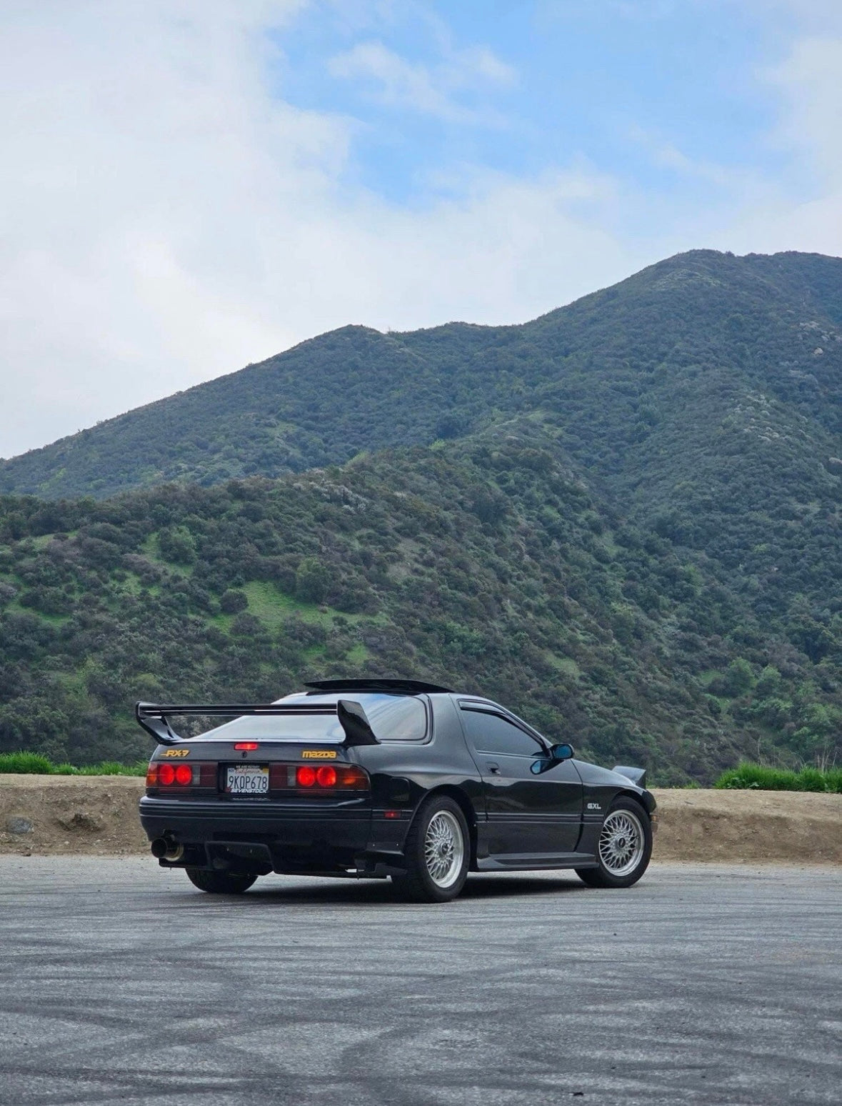 aluminum bracket finish, flat black aluminum blades, red finish side pieces.